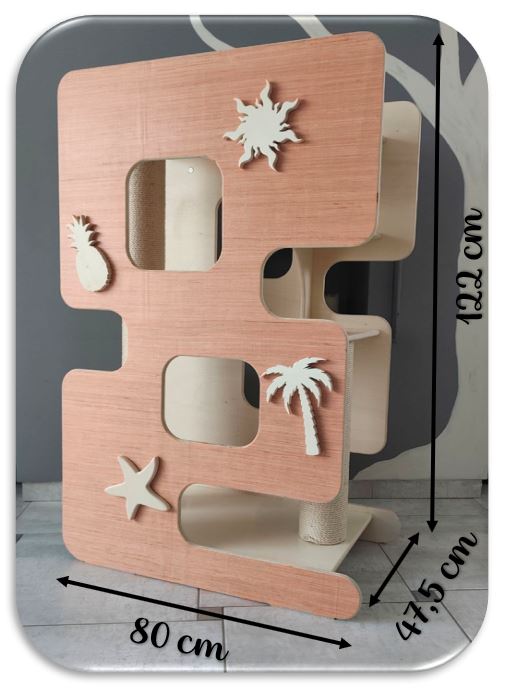 - Dimensions Optimisées : Cet arbre se distingue par son originalité, un plateau spacieux en hauteur, conçus pour permettre aux chats de se mouvoir avec aisance.