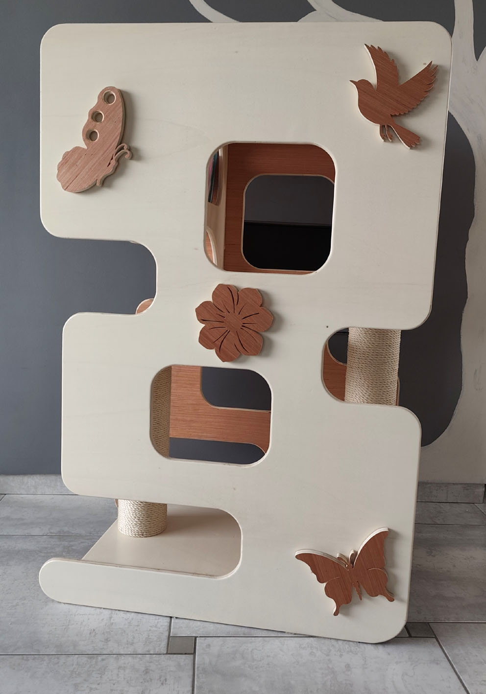 - Stabilité Maximale : Fabriqué en contreplaqué de haute qualité, un bois à la fois robuste et lourd, cet arbre offre une stabilité optimale. Vous n’aurez plus à vous soucier des chutes : il est conçu pour supporter les sauts et les jeux des chats lourds en toute sécurité. Le bois est poncé et vernis à plusieurs reprises afin d'empêcher les échardes mais aussi d'adoucir et lisser la matière.